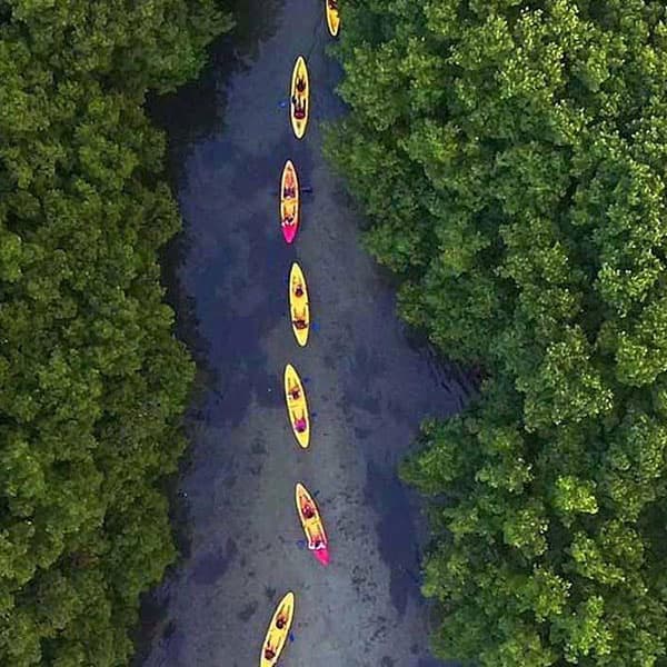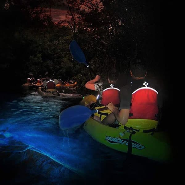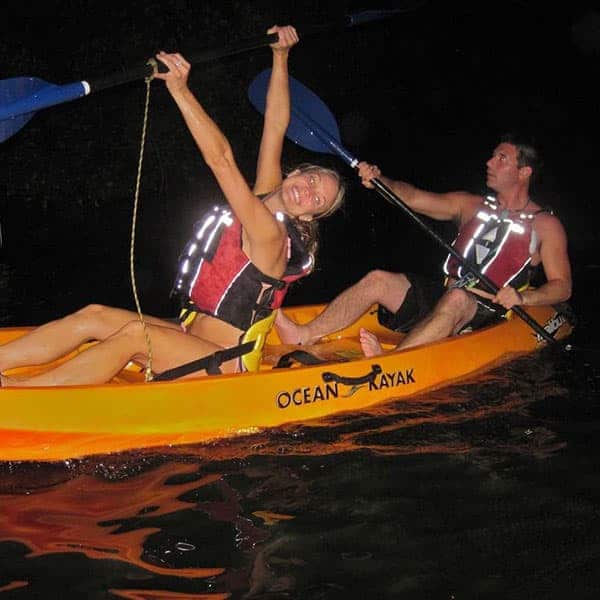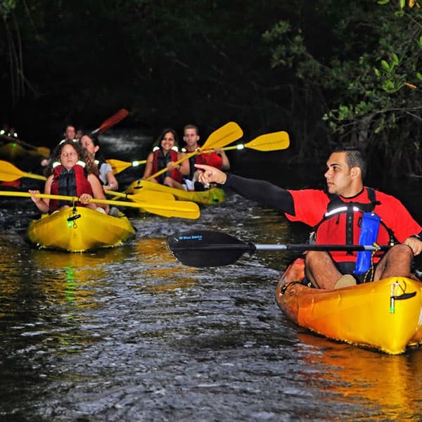 We will cruise back through the mangrove channel to the departure point with your Eco Guides and the navigation lights on the kayaks leading the way. Through the darkness the air is fresh and the sounds of nature are exotic.