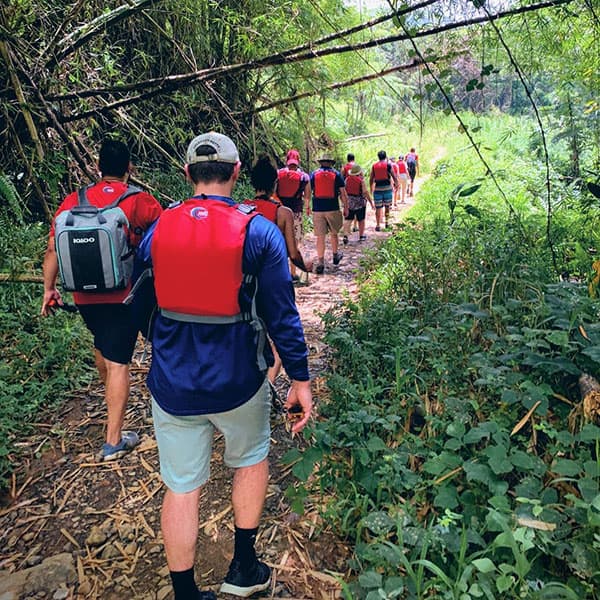 - Cross through river and continue hike up river to First Stop (10-15 minutes approximately depending on group size)